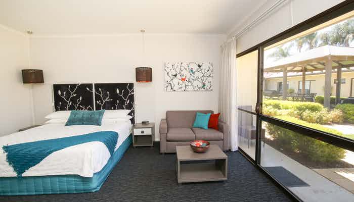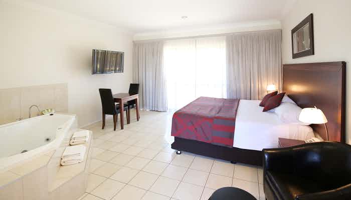 Set upon a peaceful garden setting with BBQ & Shaded Outdoor Pool, our modern 4 star suites consist of King beds, 80cm or larger Widescreen LCD TV's, Remote Control Split System Air Conditioning, Spacious bathrooms, Free WIFI & 8 Free Foxtel channels including Movies, Fox Sports & Fox Footy.