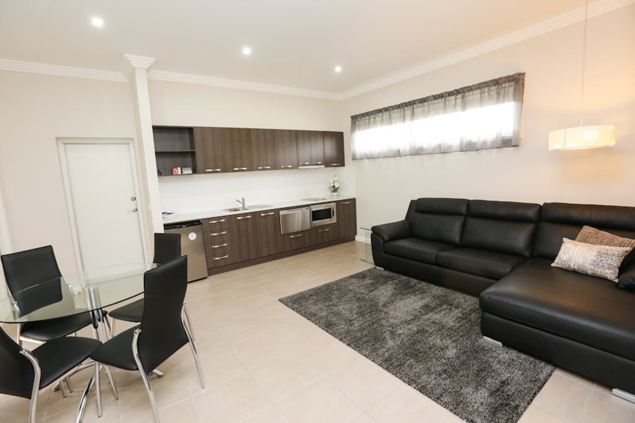 Studio Apartment with a King Bed, 2 x 42 Inch LCD TV's, Lounge & Kitchen with Stove, Convection Oven & Dishwasher. Free Wifi & 100+ Foxtel channels plus streaming capabilities. Opens on to the Garden Area. There is parking for this room, but not directly in front of your door. The room has a capacity for 2 adults in a King Bed.